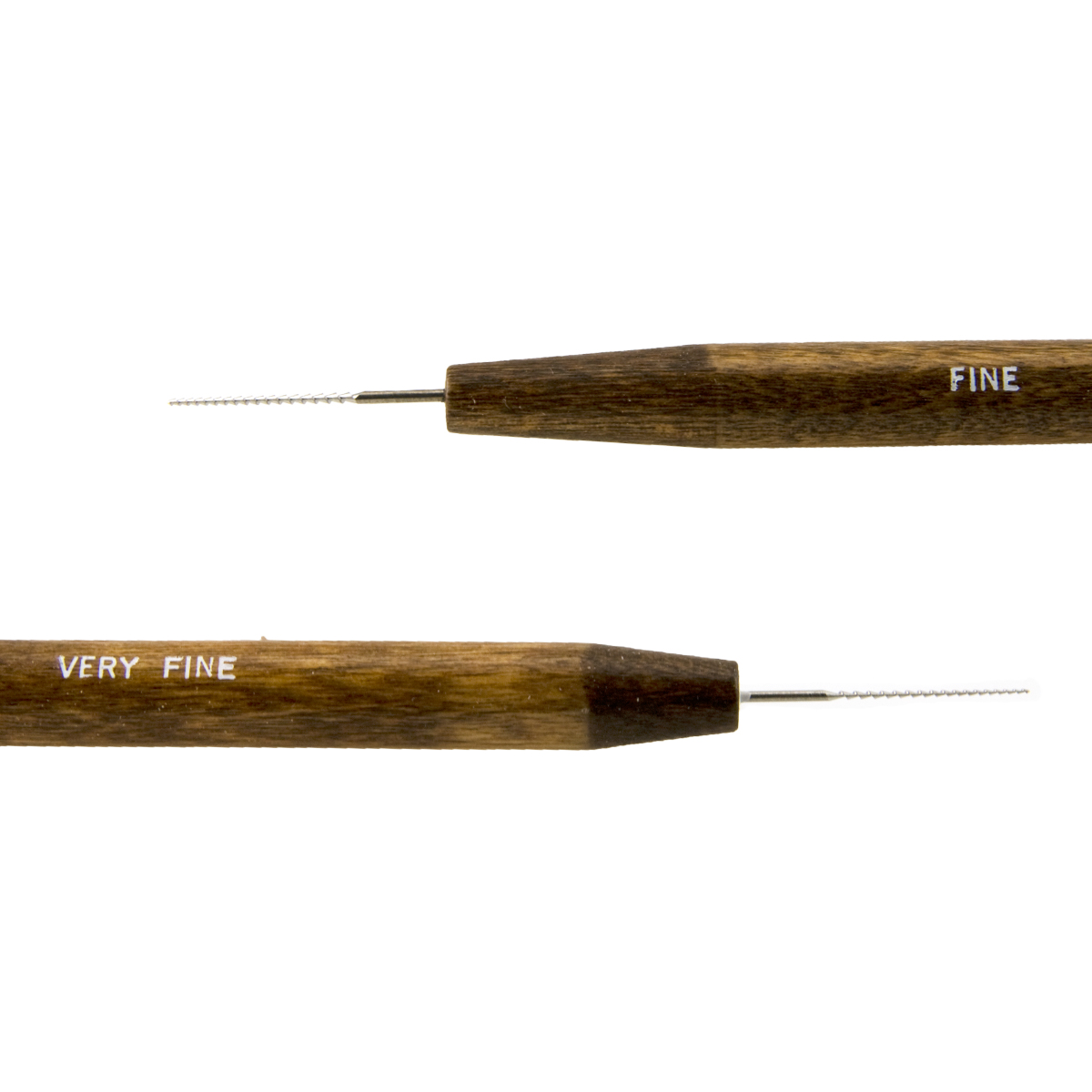 Phenomenal tools for bead or pearl reaming. Detailers are so small they can go where no other tool can, to work in tight places and enlarge small holes. Points have file-like edges to cut smoothly and quickly. Stainless tips will not rust. Fine and very fine reamers (0.6mm and 1.0mm diameters) with comfortable wood handles.