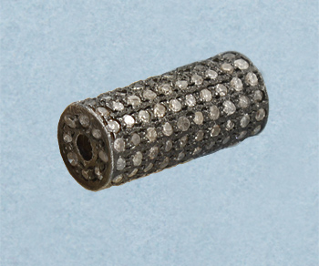 Sterling Silver Bead w/ Pave Diamonds Barrel 16x7 mm - Pack of 1