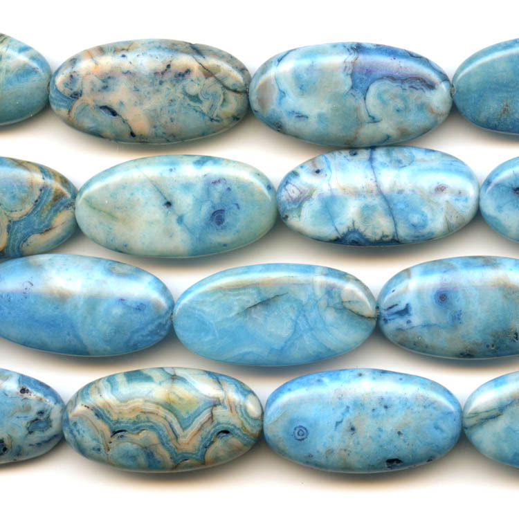 Blue Crazy Lace Agate 15x30mm Oval Beads - 8 Inch Strand