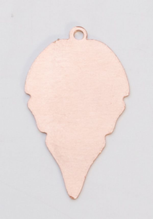 Our blank copper leaves are perfect for stamping with a beautiful design. We have many different shapes and sizes available. These leaf stamping blanks are 27mm by 18mm, have a ring for attaching chain or other component, and come in a pack of 6.
