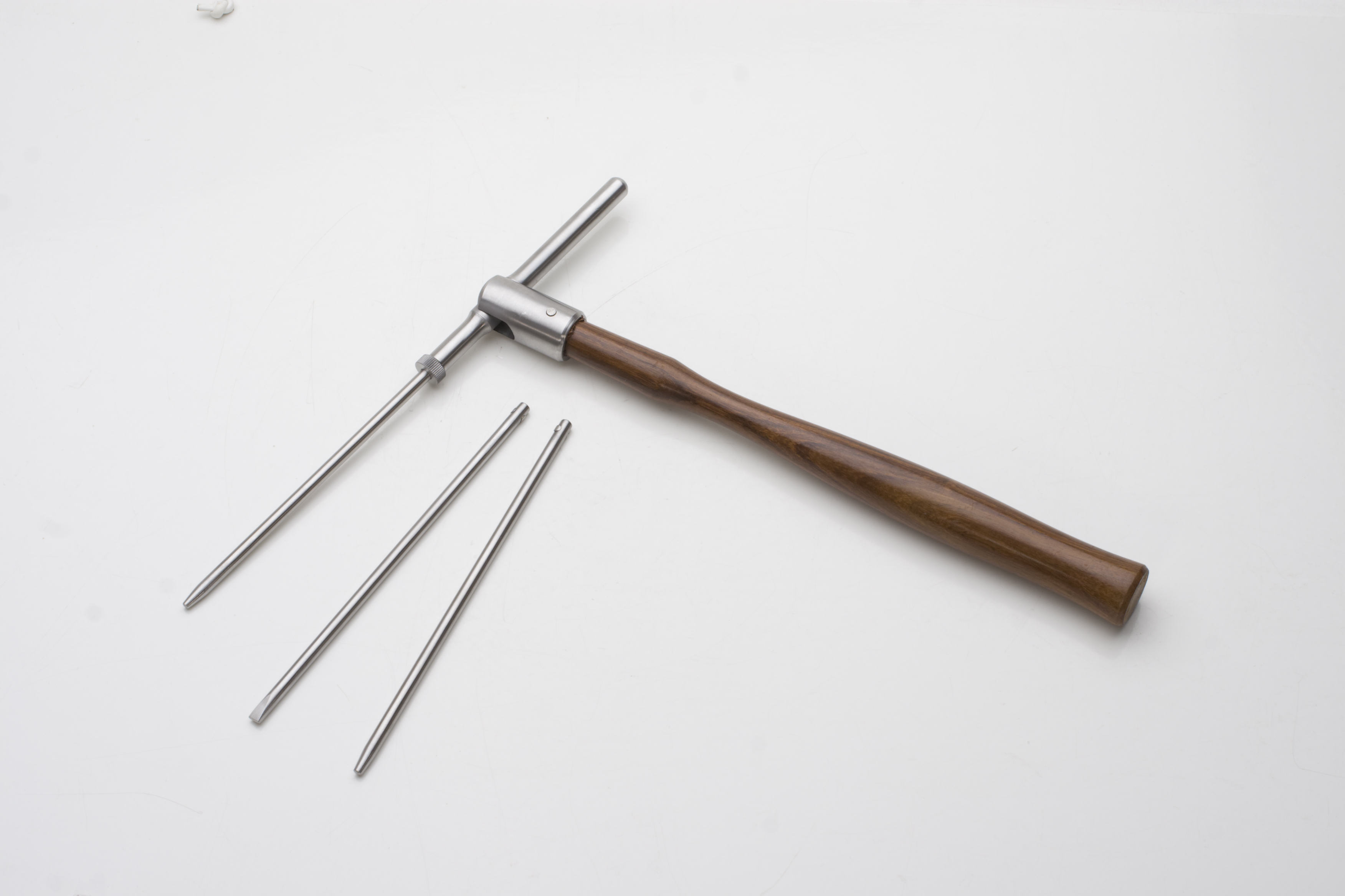 - Can be used in any position-punches rotate and head swivels with ease. Includes 3 hardened stainless steel punches. Handle made of finished rosewood.