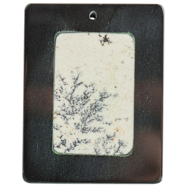 44x34MM Dendrite Agate/Black Jasper Inlay Flat Rectangle Pendant w/1.5mm Hole