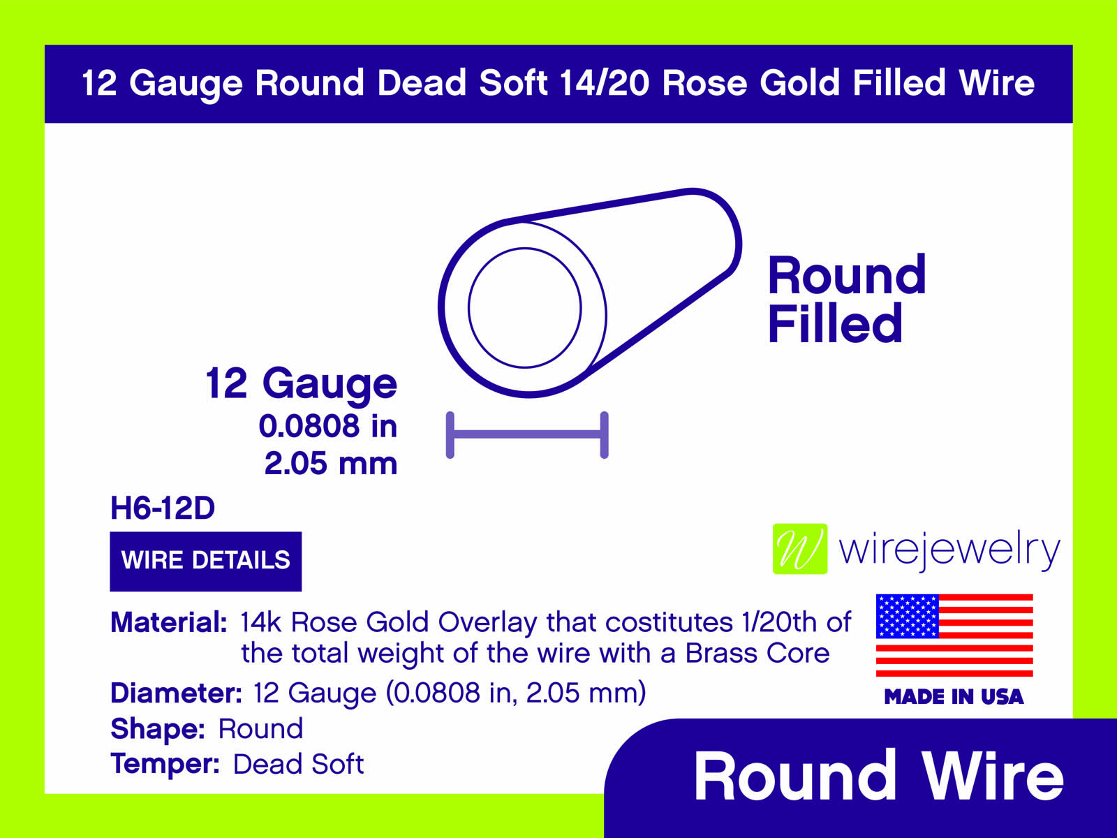 12 Gauge Round Dead Soft 14/20 Rose Gold Filled Wire