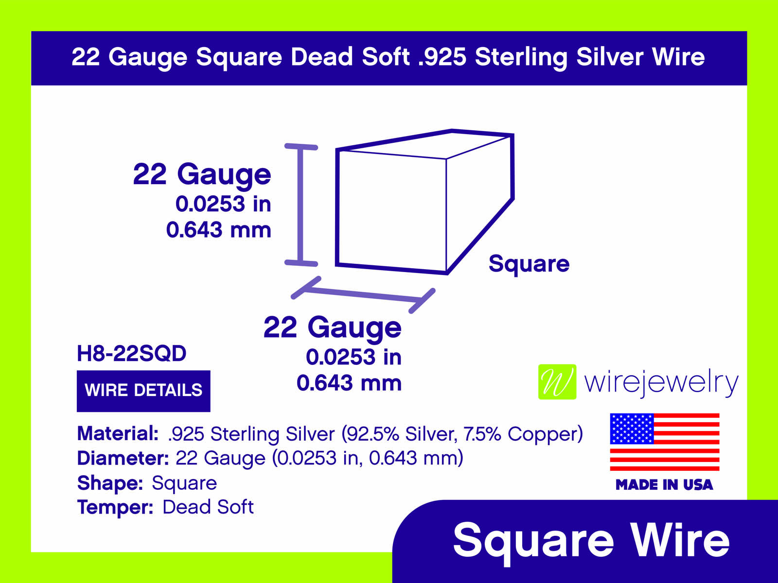 22 Gauge Square Dead Soft .925 Sterling Silver Wire. Former product ID: H8-11.